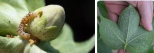 फूल आने के समय अमेरिकन सुंडी और स्पोडोप्टेरा के लिए फेरोमोन ट्रैप (4 प्रति एकड़) लगाकर निगरानी करें और आवश्यकता होने पर Emamectin benzoate 5S G (88 ग्राम प्रति एकड़) या Spinosad 45SC (60 मि.ली./एकड़) का छिड़काव करें।