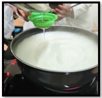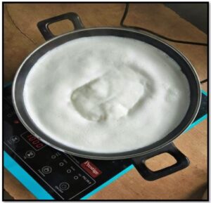 - जमाव तापमान तक ठंडा करना’ – जमावट कारक डालने से पहले गर्म दूध को 70-80 सेंटीग्रेट तक ठंडा करें।