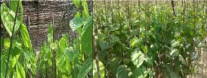 पान की बरेजा (पान की खेती के लिए विशेष संरचना): पान की बरेजा तैयार करने के लिए सबसे पहले समतल और अच्छी जलनिकासी वाली भूमि का चयन किया जाता है। बरेजा बनाने के लिए खेत को अच्छी तरह जोतकर तैयार किया जाता है और उसमें लगभग 1 मीटर चौड़ी और 30-45 सेंटीमीटर ऊँची क्यारियाँ बनाई जाती हैं। प्रत्येक क्यारी के दोनों किनारों पर बाँस, लकड़ी या ईंटों के खंभे लगाकर उस पर छाया प्रदान करने के लिए ऊपर से पलाश, नारियल के पत्ते या जूट की बोरी जैसी सामग्री बाँधी जाती है, जिससे अधिक धूप और वर्षा से पौधे सुरक्षित रहें। बरेजा के भीतर नमी बनाए रखने और उचित वायुसंचार के लिए नियमित रूप से सिंचाई और सफाई की जाती है। पान की बेलों को सहारा देने के लिए खंभों के साथ धागे या जाल भी लगाया जाता है। इस तरह बरेजा एक नियंत्रित सूक्ष्म पर्यावरण बनाता है, जो पान की अच्छी वृद्धि के लिए आवश्यक होता है।